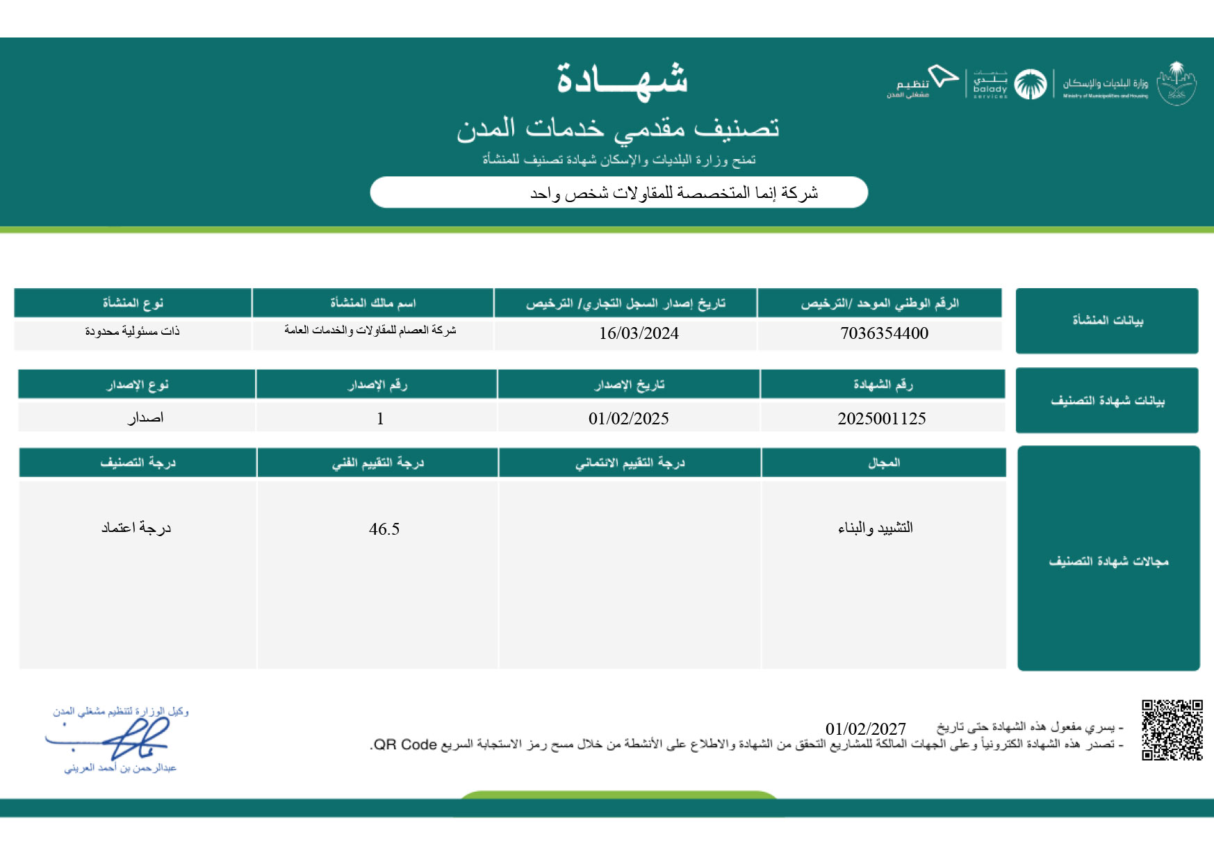“شركة إنما للمقاولات قدمت لنا خدمة ممتازة وجودة عالية في كل مراحل المشروع. فريق العمل محترف ومتعاون للغاية.”