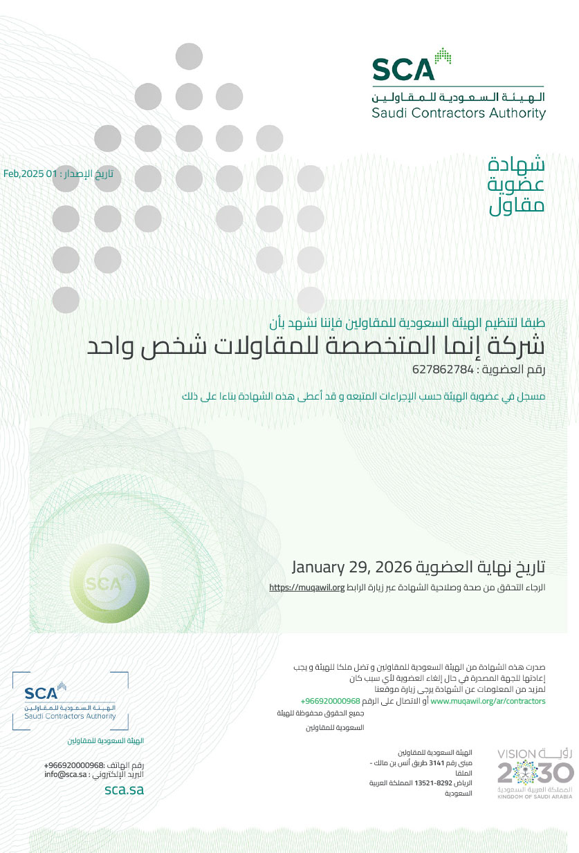 “نرى عملائنا شركاءً في كل مشروع، ونحن صناع رؤيتهم. مهمتنا كل يوم أن نجعل كل مرحلة من تجربة البناء أكثر سلاسة وأمانًا وموثوقية.”